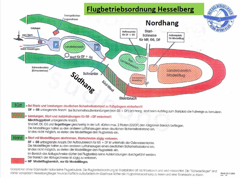 Nach dem Start bitte nach links (West) fliegen, der Bereich östlich der Schneise ist für die Modellflieger. Man kann die ganze westliche Seite des Bergs befliegen. Westlich des Funkturms bzw. der Skiliftschneise ist der Berg sehr bewaldet und ein langer Gleitflug bis zu einer Notlandewiese muss immer mit einkalkuliert werden.