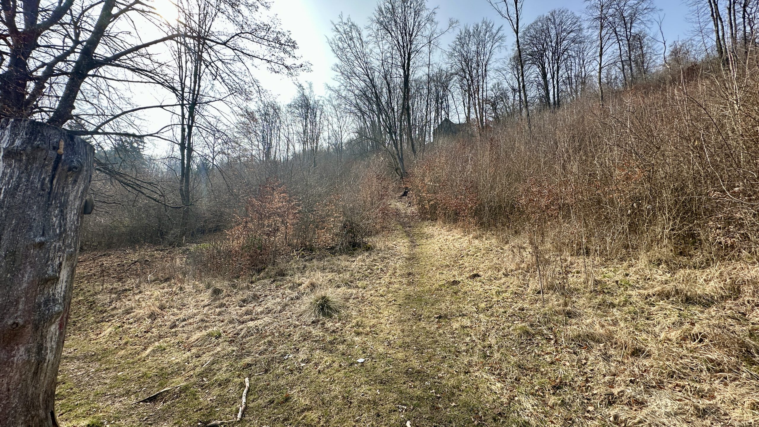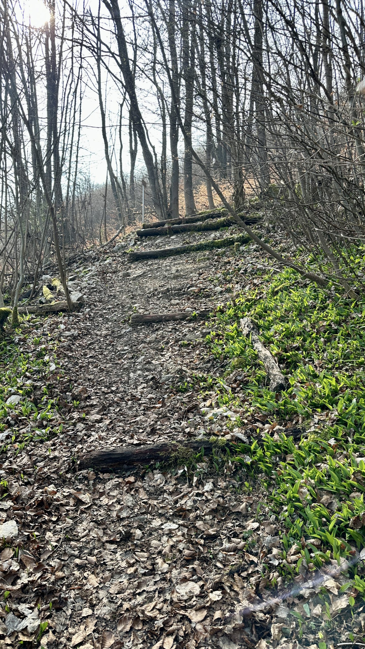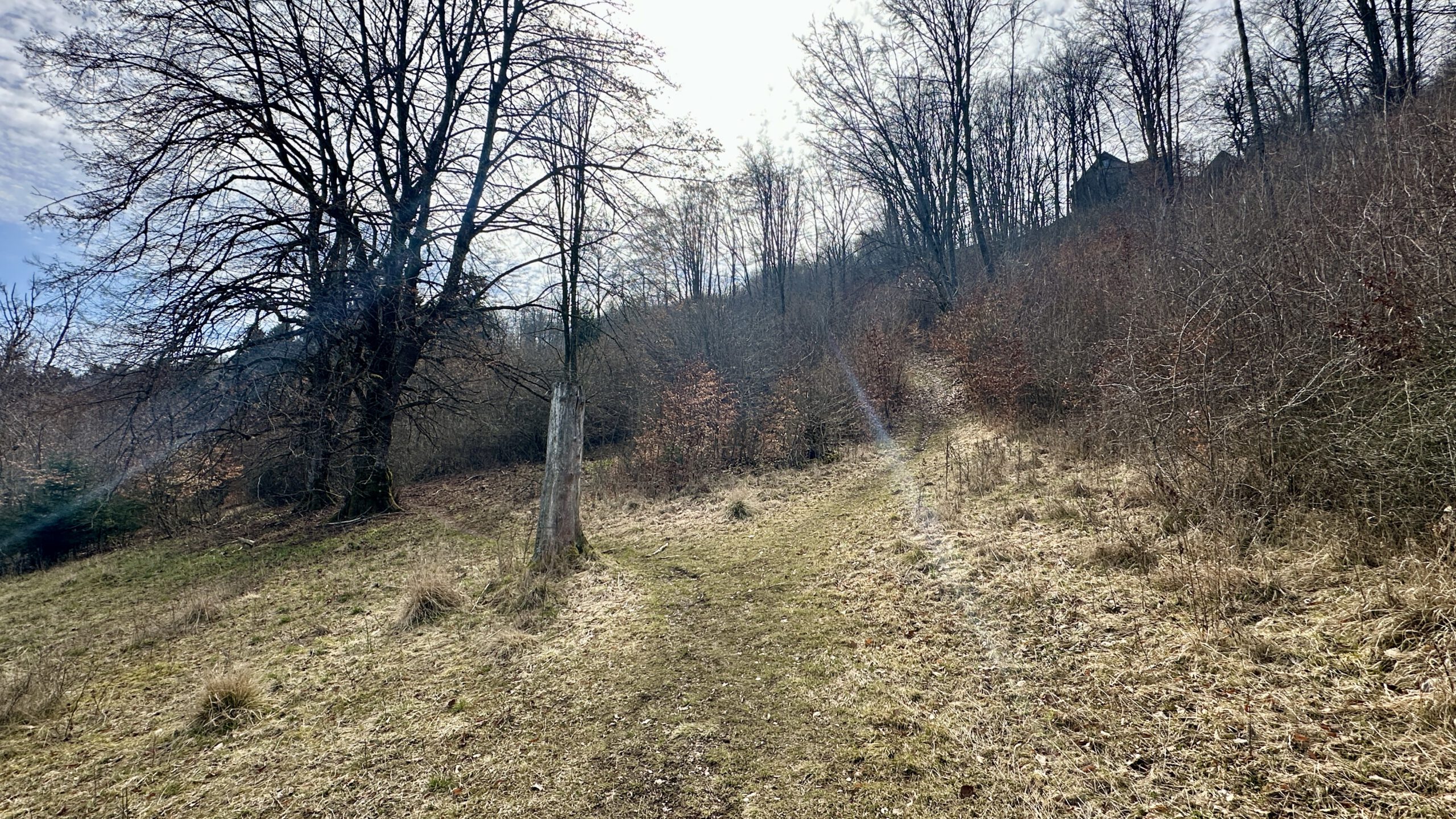 Hochlaufen kann man über den Skihang. Links der Skipiste geht ein Weg hoch zum Parkplatz. Man kann auch den Trampelpfad am Waldrand entlang zur Startschneise laufen. Dann links der Schneise bei der Bank den Waldweg wieder hoch zum Nordstartplatz.