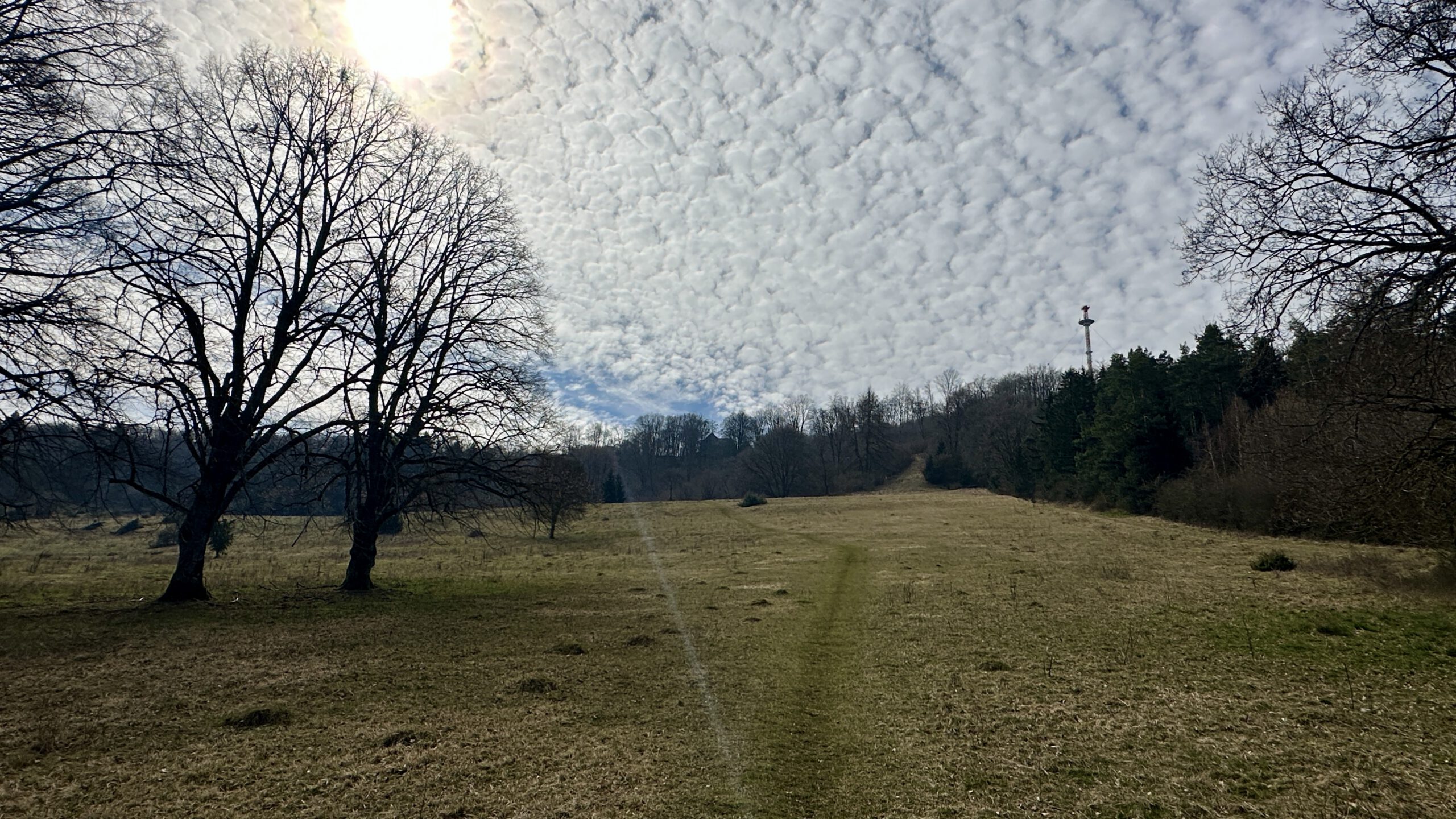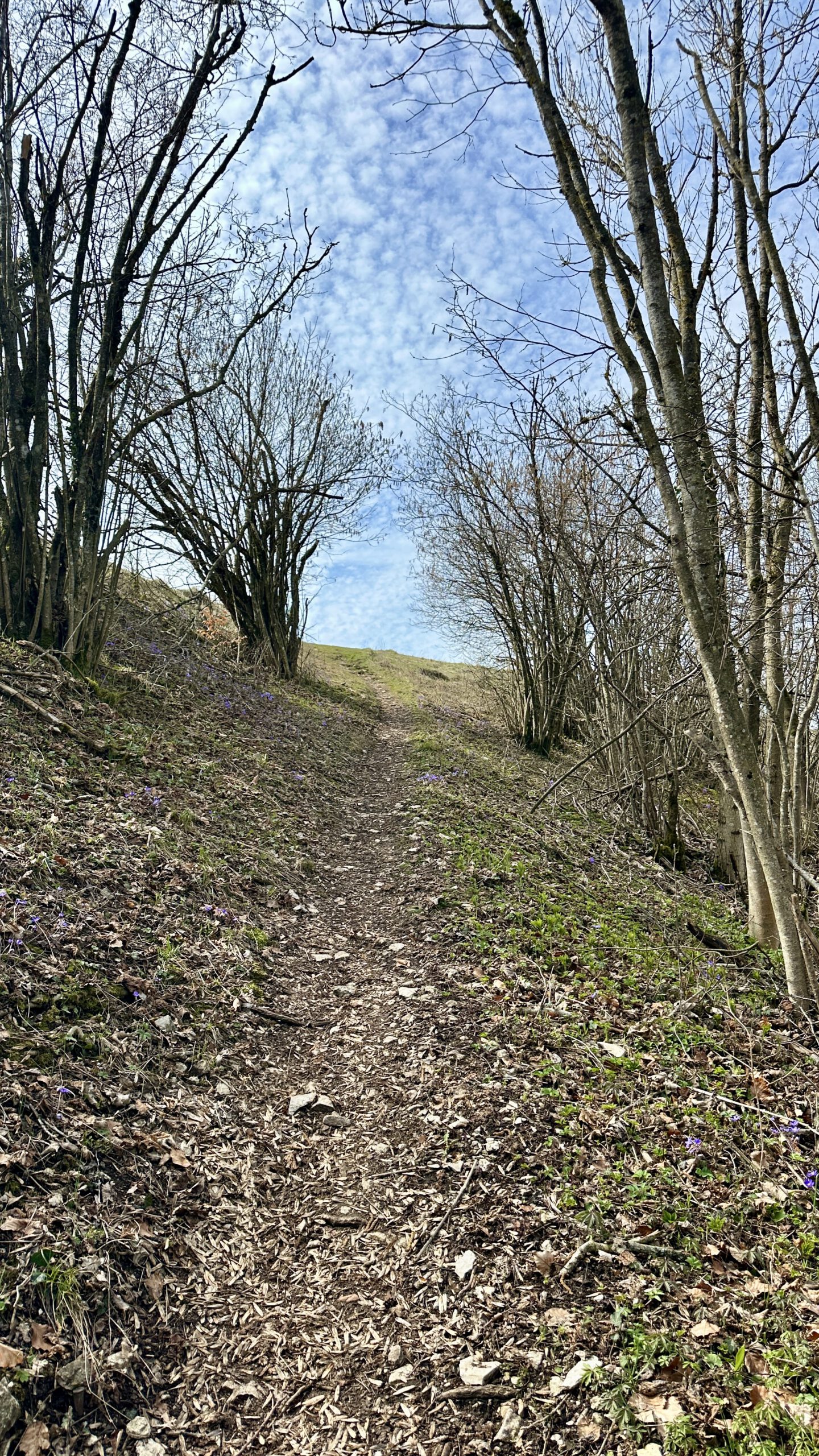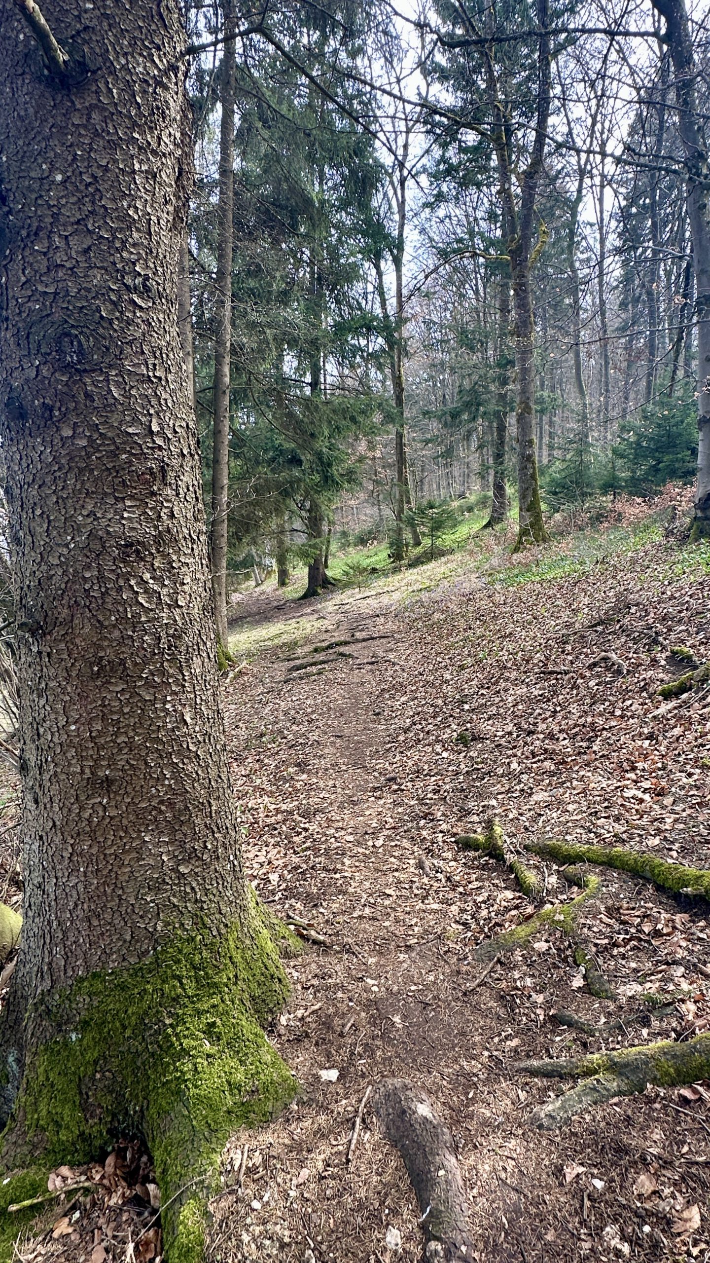 Hochlaufen kann man über den Skihang. Links der Skipiste geht ein Weg hoch zum Parkplatz. Man kann auch den Trampelpfad am Waldrand entlang zur Startschneise laufen. Dann links der Schneise bei der Bank den Waldweg wieder hoch zum Nordstartplatz.